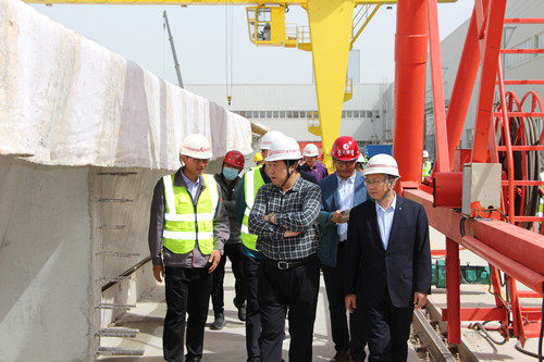 集團(tuán)寶通街高架快速路工程預(yù)制梁場正式投入生產(chǎn) 總裁朱九洲親臨現(xiàn)場指導(dǎo)
