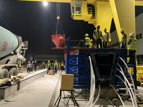 2021年5月7號凌晨3:00,集團(tuán)承建濰坊寶通街高架快速路工程項目首件預(yù)制箱梁歷經(jīng)3個小時順利完成澆筑。標(biāo)志著集團(tuán)為寶通街高架快速路工程而建設(shè)的預(yù)制梁場正式投入生產(chǎn)。集團(tuán)總裁朱九洲親臨現(xiàn)場指導(dǎo),副總裁閆鵬陪同。據(jù)悉,昌大建科為保證工程進(jìn)度共設(shè)置兩個預(yù)制梁場,1#預(yù)制梁場占地約為15500m2,2#預(yù)制梁場占地面積約為13000m2。共設(shè)計臺座110個,將生產(chǎn)720片箱梁。依托昌大建科的裝配式加工配送優(yōu)勢,全部實現(xiàn)了廠區(qū)內(nèi)鋼筋加工配送和混凝土的加工配送。預(yù)制箱梁計劃6月30日開始吊裝,9月7日全部吊裝完成。據(jù)現(xiàn)場觀摩人員介紹,首件箱梁觀感質(zhì)量非常好。 寶通街快速路作為濰坊中心城區(qū)首條高架快速路,對提升城市功能品質(zhì),增強(qiáng)中心城區(qū)輻射帶動能力意義重大。預(yù)制梁場正式投產(chǎn),對于項目順利開展,保證工程進(jìn)度具有重要意義。 ![]() ![]() ![]() ![]() ![]() ![]() |
