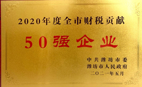 2021年5月11日,集團辦公室將濰坊市委、市政府頒發的兩個重量級榮譽獎牌領回:2020年度全市財稅貢獻50強企業;2020年度全市高質量發展領軍企業。